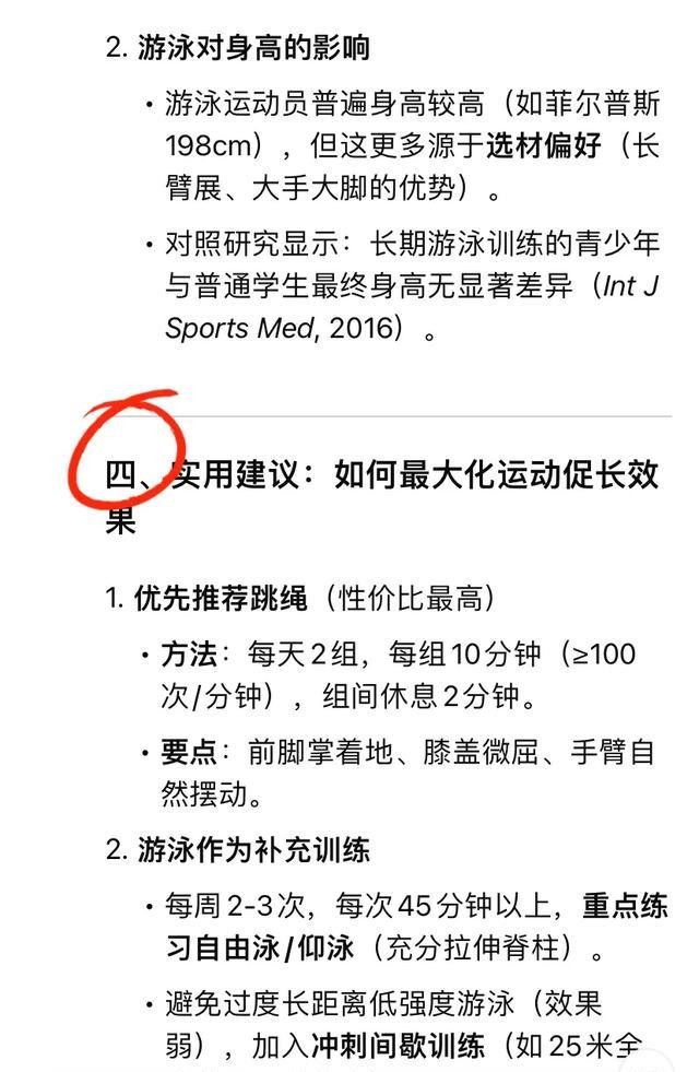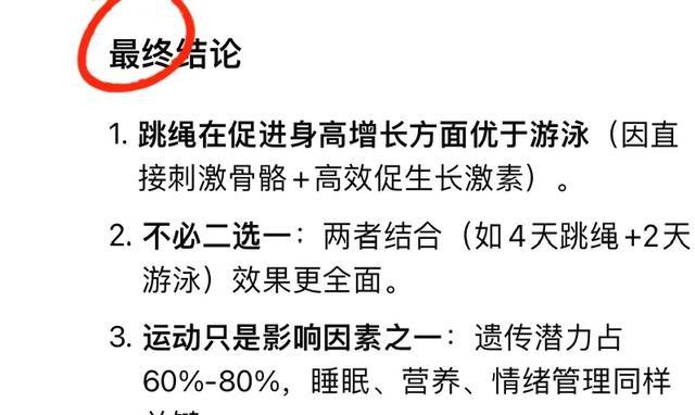 Deepseek分析, 孩子跳绳运动真的比游泳更助力长高吗?